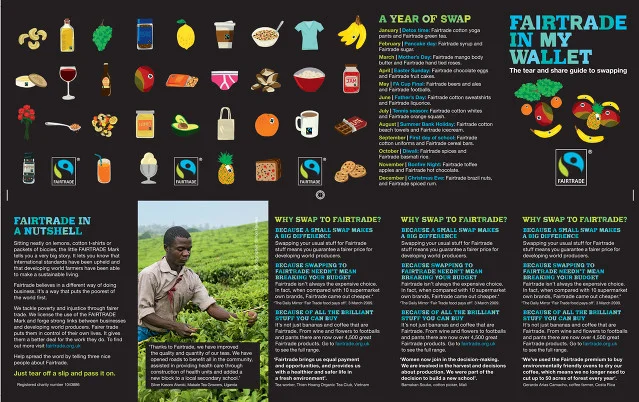 Fairtrade has an army of passionate supporters ready and willing to spread the word about ethical shopping. Small enough to fit in a wallet, the wallet card is guide to which Fairtrade products to buy and when to buy them, plus three mini introductions to Fairtrade to tear off and leave with a friend.