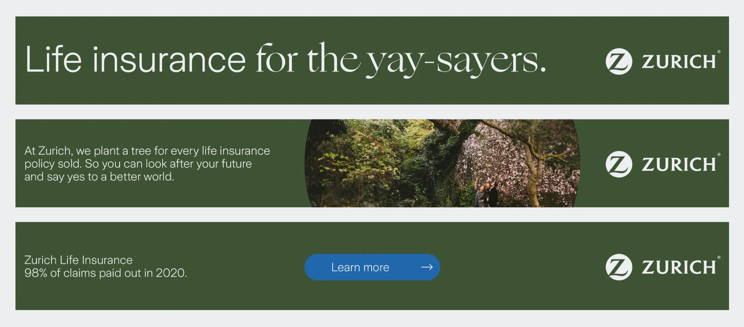 I created these ads when I was working with 72andSunny. A new take on the usual depressing life insurance ads that play on fear and worst case scenarios, these ads were part of a wider campaign that takes a positive approach to life, and life insurance.